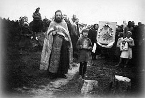 НА ФОТО Крестный ход с чудотворной Тихвинской иконой Божией Матери в занятом немцами городе Болхов на Орловщине, в центре отец Василий Веревкин. 1943 год [Подробнее ...] | дата: 21.01.2015 просм.: 1643 ресурс: Рассвет