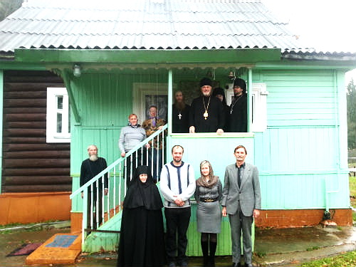 Мы видим вместе с монахиней пятерых клириков и почти равное с ними число шестерых мирян, и то в основном не-местных -- "гости из Москвы, Тверской области и Феодосии". Да и клирик один не с этих краев -- "иеромонах Захария, насельник Андроникова скита Северо-Русской Епархии (Республика Коми)". Этот Захария из северного скита на разрывный спрос меж М.Лапковским и епископом "Северо-Русской Епархии" РПЦЗ(В-В) В.Парбусом, который неустанно рекламирует со своего сайта сей скит, где всего два монаха. Возможно, скит возводится уже долгими годами, оттого что Захария вместо траты средств на его постройку предпочитает из приполярных лесов прогуляться под Москву на сугрев в "кафедральный собор"? Он располагается в избе бывшего завуча местной школы монахини Михайлы (на фото первая внизу слева) в поселке Глебовском у станции Холщевики Рижской ж.д. недалеко от речки Истры, отчего М.Лапковский носит могущественный титул Истринский.