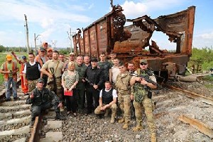 Покореженным поезд стал через пару дней как появился на путях. Сработала авиация. Зону вокруг него простреливали потом наши снайперы с Карачуна. И стоял он, ржавел на переезде до вчерашнего дня, когда наш танк оттащил его в сторону и железнодорожники начали ремонт путей.