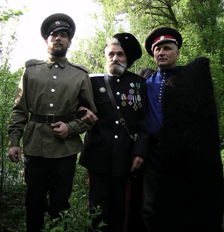 На нижнем фото справа налево: А.Дородницын; Ю.Г.Болоцков -- ветеран 5-го Донского полка 15-го Казачьего кавалерийского корпуса 2-й гражданской войны 1941-45; С.Лошкарев по прозвищу «Белогвардеец», отбывавший тюремный срок по сфабрикованному против него «оружейному» делу за его активистскую казачью деятельность в Новочеркасске, а теперь выпущенный по амнистии: