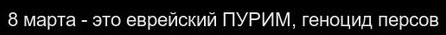 | Диакон МП А.Кураев «Можно ли не праздновать 8 марта?» – Советский Женский день в честь иудейского Пурима, торжествующего убийством 75-ти тысяч персов вплоть до «детей и жен»