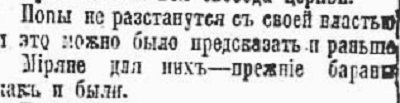Заметка из "Красной газеты" от 13 апреля 1918 года, что при Советской власти мирянам СВОБОДНО нельзя выбрать себе честного, истинно-верующего в Бога священника. В Московской патриархии (МП), созданной Сталиным и чекистами в 1943 году, это стало трагической безысходностью, верховодят христопродавцы-сергиане.