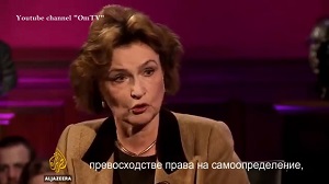 ВИДЕО: Британский журналист М.Хасан ведет интервью с Н.Нарочницкой на канале "Аль-Джазира" в зале с публикой. Перевод с английского на русский внизу экрана. Нарочницкая -- депутат Госдумы 4-го созыва, ст.научный сотрудник Ин-та мировой экономики и международных отношений РАН, глава Европейского Ин-та демократии и сотрудничества в Париже. За ложь, клевету, бессовестно извергаемую, как в РФ, так и по миру такими, как она, как "дипломат" с говорящей фамилией Чуркин с такими же говорящими -- "думнодеятель" Пушков, "журналисты" Д.Киселев, Соловьев и др. всевозможные российские «политики», люди, что смеются здесь, и иные на Земле не уважают, ненавидят нас. Что в СССР, что в РФ «рукамиводители» никогда не могли и не могут смотреть правде в глаза. Вранье – исторический удел трусов, смелых лишь террором над правдолюбцами в их лапах. Говорящая фамилия и у Нарочницкой. Бог шельм метит.