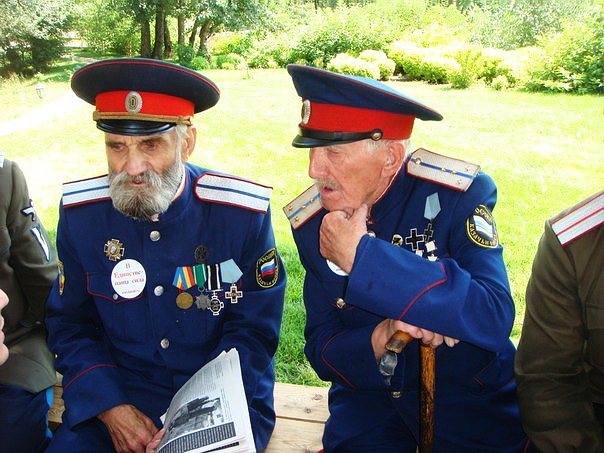 НА ФОТО хорунжий 15-го Казачьего кавалерийского корпуса Вооруженных сил Комитета освобождения народов России Ю.Г.Болоцков (слева) и хорунжий Отдельного казачьего корпуса Казачьего Стана РОА В.Г.Пивоваров, тоже проживающий после ГУЛага в родной станице на Дону