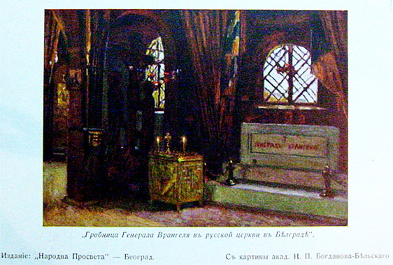 Осенью 1929 года из временного захоронения в Бельгии на кладбище в Юккль-Кальвет останки П. Н. Врангеля, как он завещал, были перевезены и захоронены 6 октября под сводами выстроенного белыми бойцами православного храма во имя Святой Троицы в Белграде, где стояли 156 знамен Русской Армии Главнокомандующего генерала Врангеля. Хранится прах Белого барона там и поныне. Когда натовские летчики бомбили Белград в 1990-х годах, их бомбы и ракеты рушили многое окрест этой церкви, но ни одна не "посмела" тронуть ее внутренних покоев.