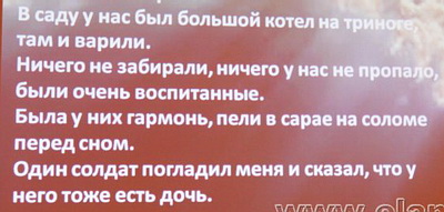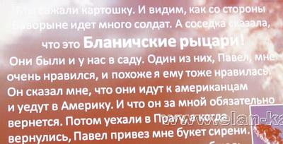 Сейчас Евгения Евгеньевна Чигалова ездит по Чехии и собирает воспоминания тех, кто помнит о нахождении воинов РОА в их населенных пунктах, узнает о захоронениях и составляет карту их нахождения в республике. Вот несколько воспоминаний, которые она приводила во время своего автобиографического доклада: